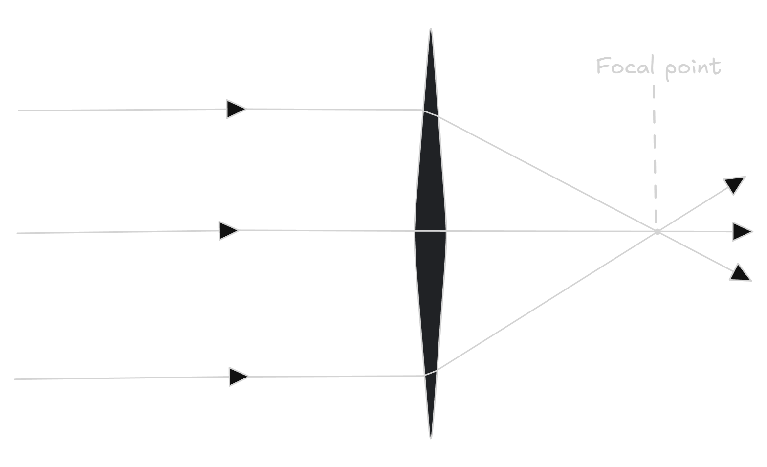 If light reaches a convex lens from a distance, the convex lens can be used to focus the light on a screen to form an image, for example this happens at a cinema. This image also forms by the convex lenses in your eyes.