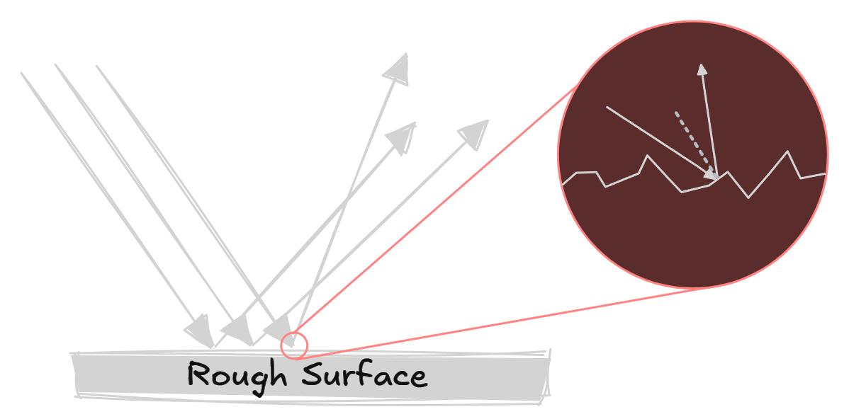 When light rays hit a rough surface, the reflected rays scatter in different directions. However, the law of reflection still applies.